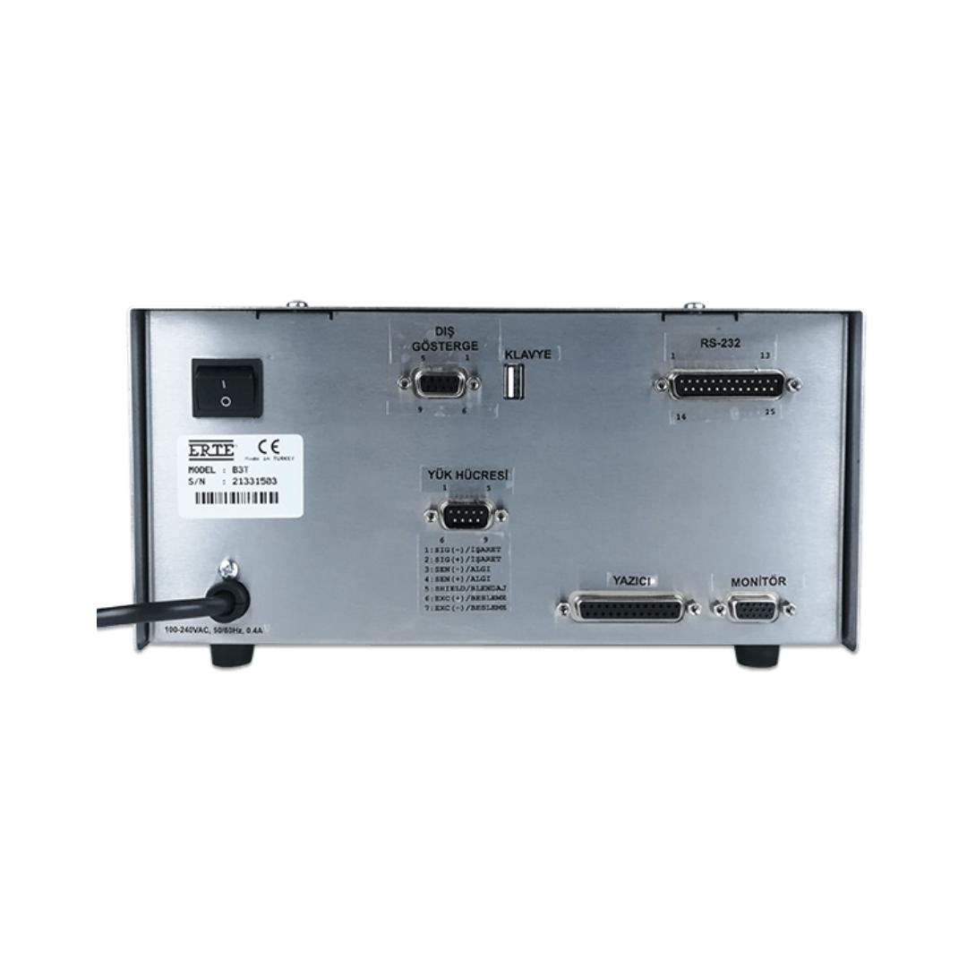 25mm. digit height LED display Stainless steel Load cell short circuit protection 100..240V AC 50/60Hz Universal Supply domestic product Software Features 30000 weighing memory 5 questions Turkish – English, Arabic language options Works with Epson compatible dot matrix printer Area of Use Vehicle scales, Industrial Scales Scale Features Class III Single Stage 10000, Double Stage 2 x 6000 increments 200000 industrial resolution Multi-Range, Multi-Interval Alibi memory (9999 weighing capacity) CE certification (Germany PTB: DE-19-NAWID-PTB006) OIML certification (Germany PTB: R76/2006-A-DE1-2019.06) Links USB Keyboard VGA Monitor LPT Printer RS-232 External Indicator Applications Truck Weighing, Single-Series Weighing, Labeling with External Printer options Traffic Light Output, RS-232, RS-485, USB, Ethernet, Wi-Fi, Modbus TCP/IP, Alibi memory with 99999 scale capacity